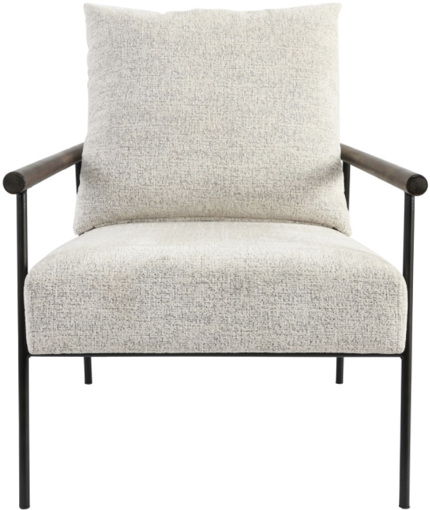 Black iron legs create bold contrast against the textured upholstery of this modern accent chair.Read More
