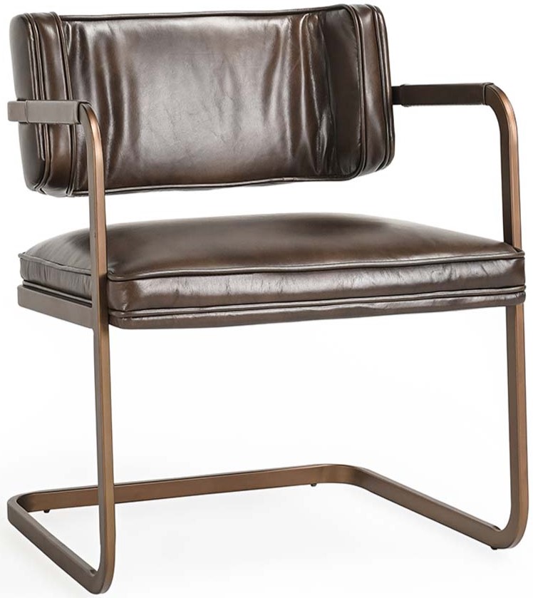 Complete your dining room design with this dining chair from Fonda collection. Shown in bronze metal finish. This chair has upholstered in brown color leather. This piece will definitely add style to your room.Read More
