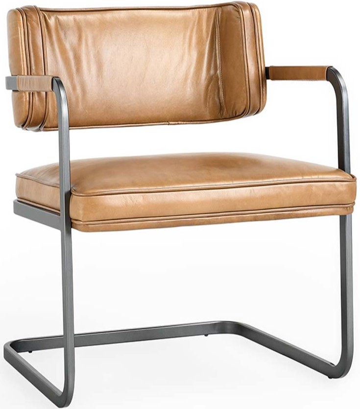 Complete your dining room design with this dining chair from Fonda collection. Shown in iron metal finish. This chair has upholstered in Tan color leather. This piece will definitely add style to your room.Read More