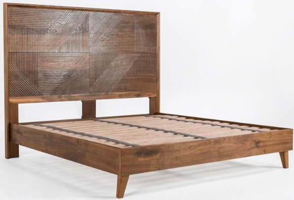 Designed as a modern showpiece, this queen bed features a sharp, linear pattern carved into its headboard. A warm, medium brown finish highlights the natural variations inherent in oak wood. Angular and sophisticated, this piece enhances any space.Read More