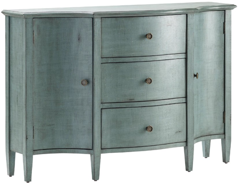 The Crestview Collection Abigail 2-door 3-drawer Brushed Cool Blue Credenza shows off your personal style with a gentle light blue finish over poplar wood. This credenza is full of personality with a calming brightness and classic metal pulls on the front cabinet doors and curved drawers.Read More