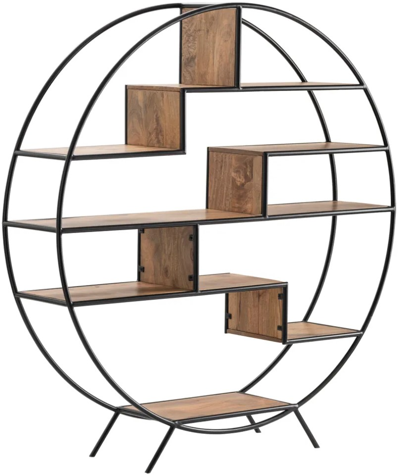 The Crestview Collection Accord Round Etagere has a round shape that will bring a sense of balance to your living room. This bookshelf has a black iron frame with medium-brown wooden shelves. Four split-level shelves create a striking look to give you unique spaces for displaying your favorite decorative items.Read More