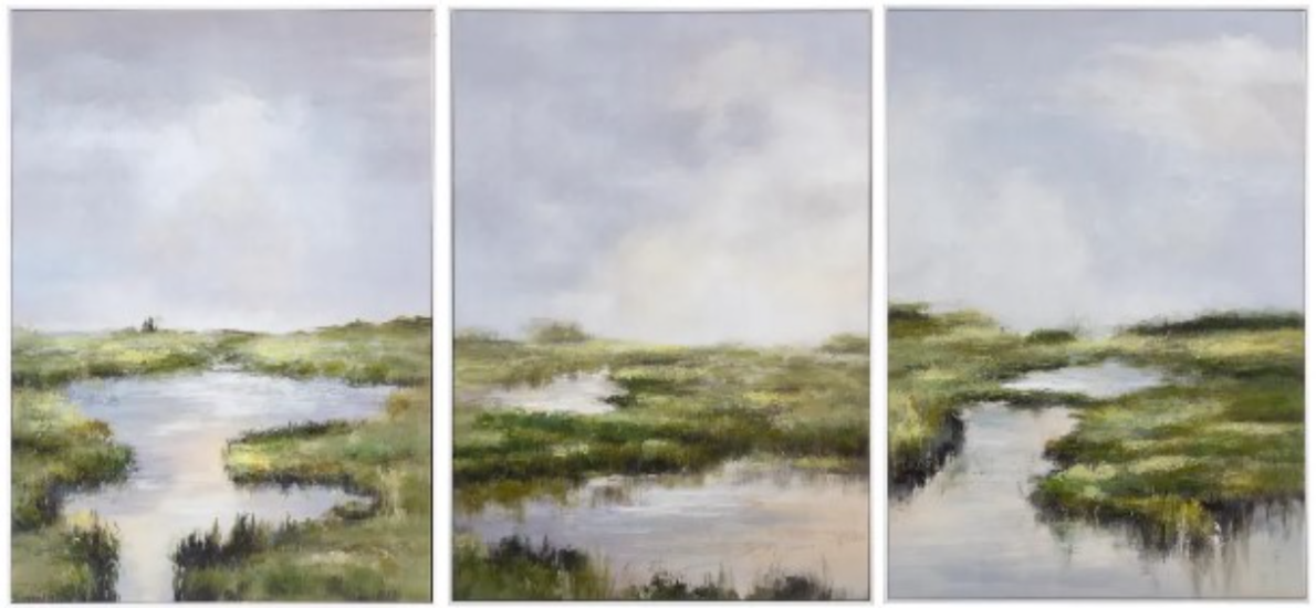 Introducing the beautiful set of 3 paintings on canvas that will transport you to a tranquil coastal paradise! This magnificent piece of art features a serene coastal scene of the marsh lands, with clear blue skies and lush green and blue tones for the water.Read More