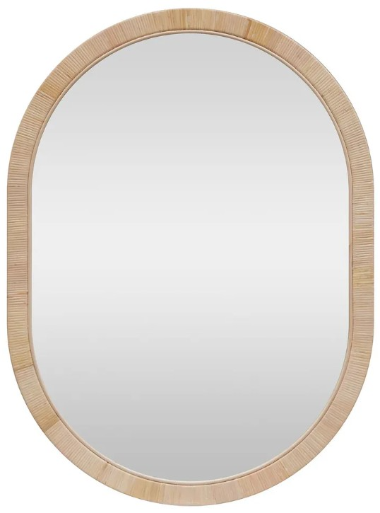 This oval accent mirror showcases transitional style with a soft tan frame that blends warmth and elegance. Its graceful shape and neutral tone make it a versatile piece, perfect for adding subtle sophistication and visual interest to entryways, bedrooms, or living spaces.Read More