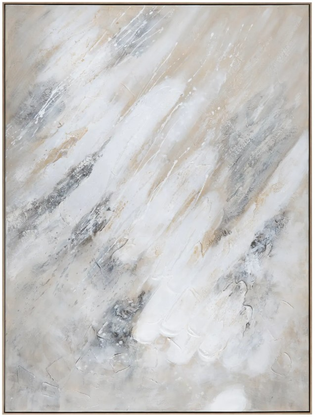 Anderson Wall Painting by Crestview Collection, abstract artwork in gray, taupe, and white tones. Layered textures and a natural wood frame add depth, warmth, and contemporary elegance, making it a captivating focal point for any modern space.Read More