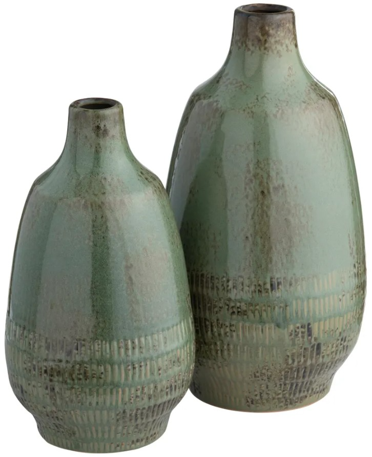 The 2-piece green ceramic Arden vases blend rustic charm with elegance. Featuring a glaze and classic shapes, they add warmth and texture to any space. Perfect for rustic-inspired interiors, these vases enhance shelves, mantels, or tabletops with natural appeal.Read More