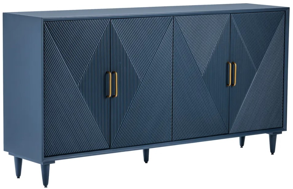 Store your dining accompaniments or entertainment accessories in this Crestview Collection Arvada 4-door Sideboard. The bold blue acacia wood finish and contrasting gold cabinet door pulls bridge the style gap in any home's space.Read More