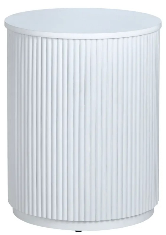 The Astoria accent table features a sleek, cylindrical white finish with elegant vertical fluting encircling its form, topped by a smooth circular surface. Part of the Crestview Collection, its refined yet textured silhouette brings transitional sophistication to any living space. Its vertical grooves add refined texture and visual interest.Read More