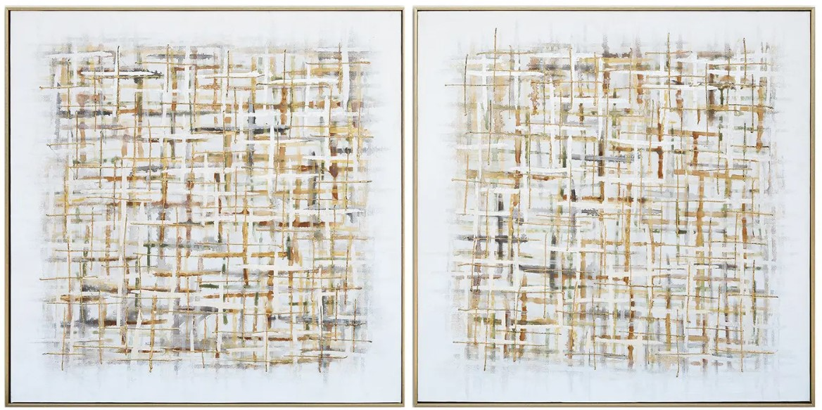 Introducing our Avalon set of two contemporary canvas paintings, a dynamic duo that bursts with energy and color, redefining the boundaries of modern art. Each canvas features a brilliant white background that becomes the canvas for a mesmerizing intersection of color yellow, green, blue, and orange creating a crisscrossed dance of abstract lines.Read More