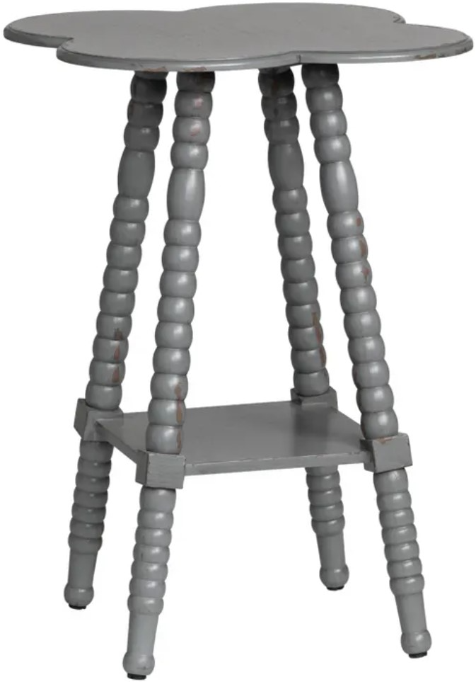 Even in a dark gray wood finish, this Crestview CollectionBar Harbor gray Clover Shaped Accent Table has a clover-shaped tabletop that will bring you luck and perhaps even a smile. It fits into any small space, with traditionally spindled legs and a lower shelf for display of things you love.Read More