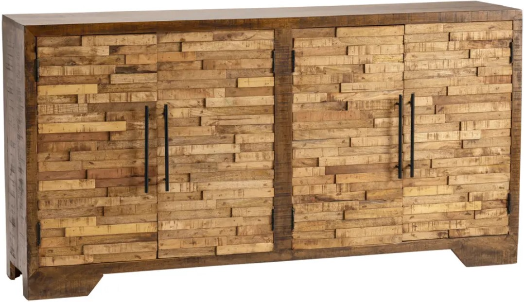 The Crestview Collection Bengal Manor Mango Wood Random Strips Sideboard presents a dark/ medium brown finish on rubberwood legs. This rustic style piece brings light into the room with its dazzling mango wood strip doors.Read More