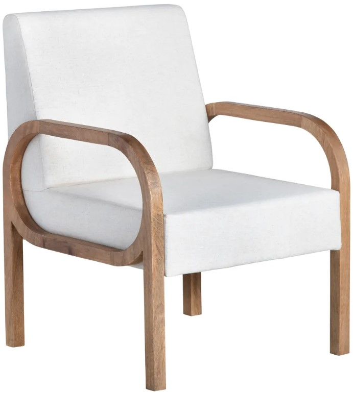 Sink into luxurious comfort with the Chico Accent Chair by Crestview Collection. The natural mango wood frame boasts a beautifully stained light brown finish, highlighting its striking texture and tonal depth. The curved silhouette adds a touch of organic softness, while the off-white linen upholstery exudes subtle elegance and timeless appeal.Read More