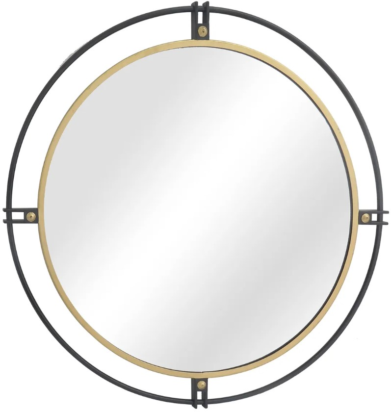 Your modern style is ready for this Crestview Collection Fallon Mirror in an industrially-inspired black metal frame. The eye is drawn in by an inner ring in a golden brown finish, encircling the mirror glass. Inner meets outer in four radiant spokes that connect the two circles and hint at outward movement and traditional imagery.Read More