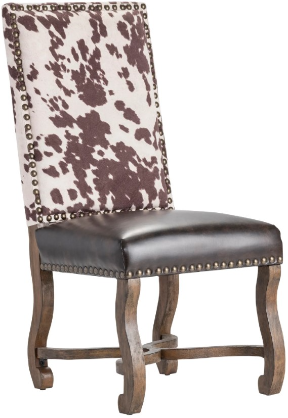 You might want to "saddle up" to this Crestview Collection Mesquite Ranch Leather and Faux Cowhide Side Chair and welcome it into your home. Sitting on it feels like a commanding post, with a cushioned seat and dark brown birch wood finish in the frame.Read More