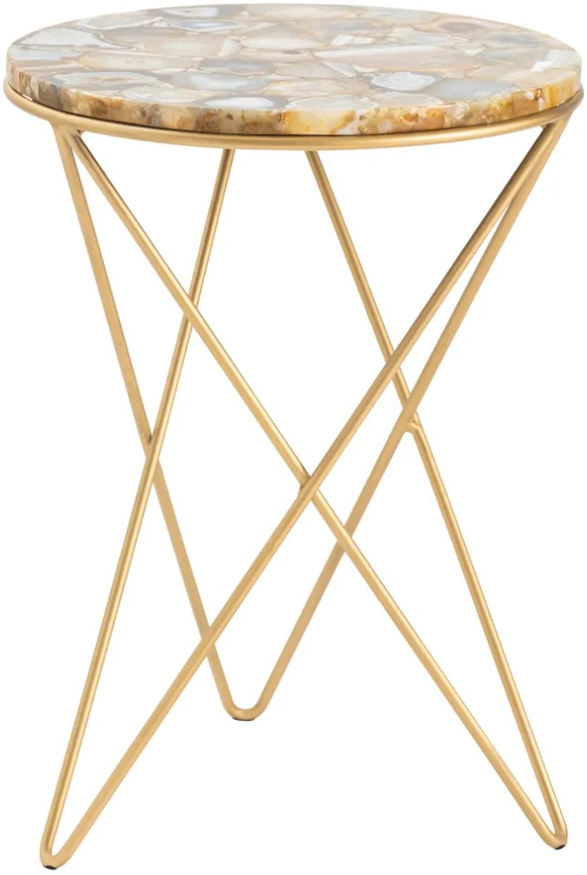 The Crestview Collection Olivia Accent Table features three hairpin legs that support an agate table top. The gold finish of the metal legs complements the white and gold design of the top to give you a brilliant piece that brings elegance to your home. This round, transitional table will blend with any decor style.Read More