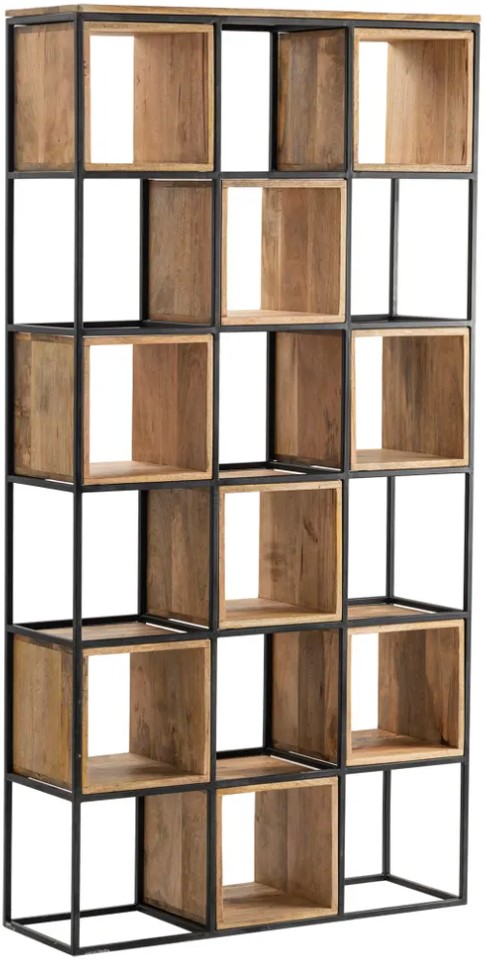 The Crestview Collection Owen Etagere brings ample storage space to any room. Six rows and three columns create 18 compartments to organize your decorations. The black metal frame and light-brown wooden cubs give this contemporary piece a rustic style.Read More