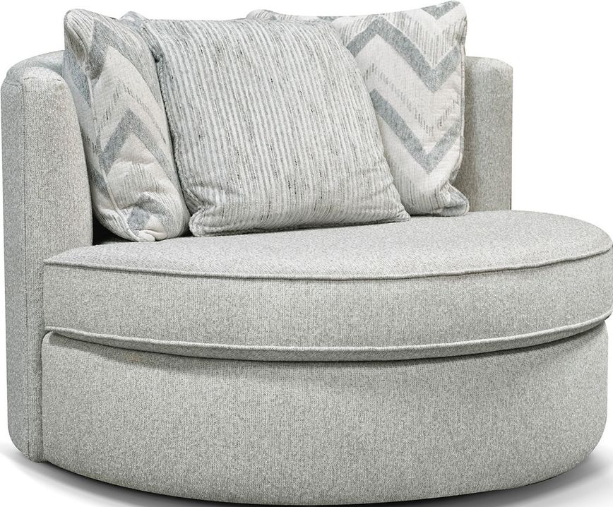 England's Alex swivel chair will soon become your favorite seat in the house. This oversized chair features a plush seat and loose pillow back. Cover it in your choice of over 400 fabrics and make it all yours!Read More