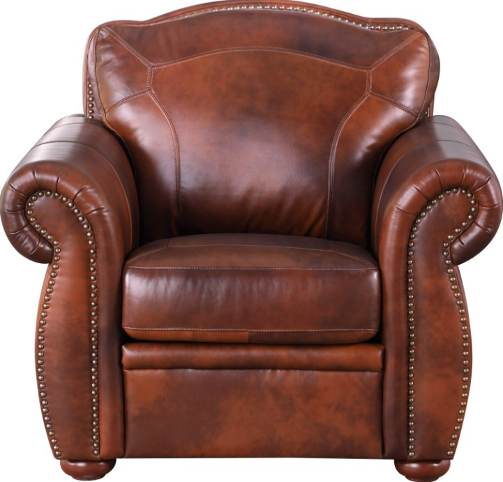 The Arizona is a full-sized Sofa, Loveseat, Chair and Ottoman upholstered in luxurious leather throughout, with padded front sides and back with handcrafted nailhead trim. Beautifully sculpted rolled arms and detailed solid wood feet make this a wonderful addition to anyone's home.Read More