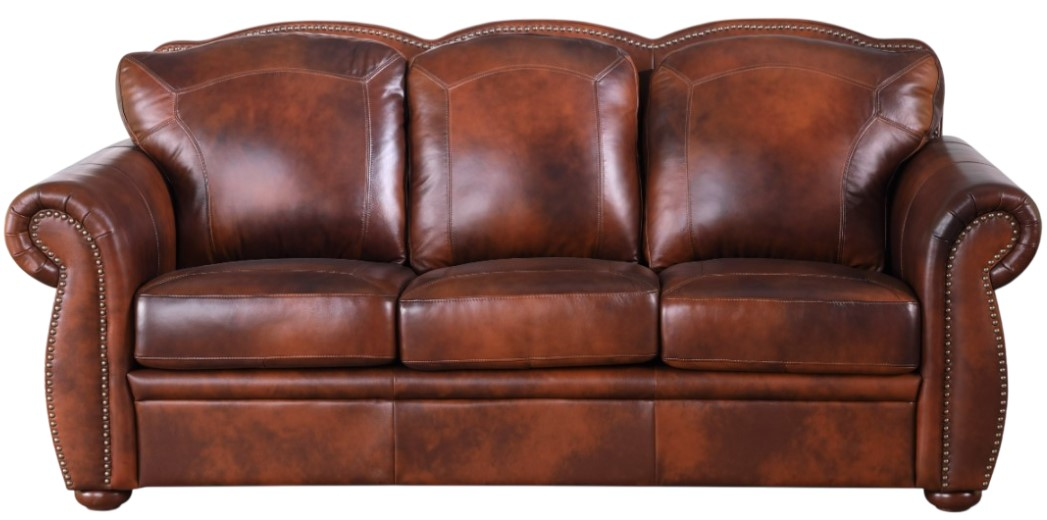 The Arizona is a full-sized Sofa, Loveseat, Chair and Ottoman upholstered in luxurious leather throughout, with padded front sides and back with handcrafted nailhead trim. Beautifully sculpted rolled arms and detailed solid wood feet make this a wonderful addition to anyone's home.Read More