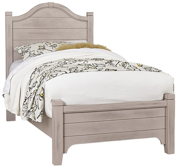 The dover gray full arched bed showcases timeless design with its arched headboard, horizontal plank detailing, and solid wood posts. Built for durability and charm, this bed is ideal for a cozy bedroom setup and can be paired with an optional storage footboard.Read More