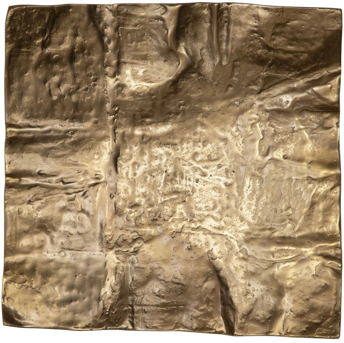 Handcrafted cast aluminum wall accent showcases a heavily textured organic shape in a brass plated finish. A circular hanger on the back provides countless hanging options, enabling truly unique wall designs. Felt pads also included for use as a tabletop tray.Read More