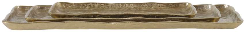 A set of three cast aluminum trays displays organic edges with a heavily textured light antique gold finish. Make a bold statement by incorporating this stunning home decor into your home.Read More