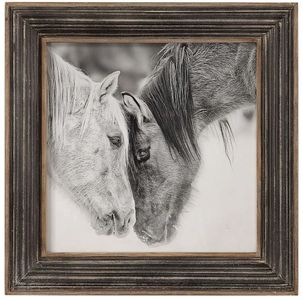 Rustic charm is added to a design with this black and white printed photograph. The transitional animal print is surrounded by a distressed wood and metal frame with corrugated style ridges. A distressed black finish and gray wash adds dimension to this piece.Read More