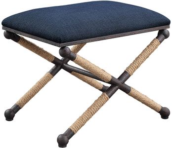 Rustic iron frame with a nautical touch, wrapped in natural fiber rope accents. Cushioned top is a cotton blend in a rich textured navy blue.Read More
